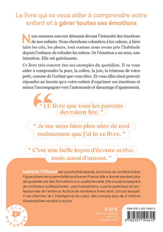 Ce livre très concret tire ses exemples du quotidien. Il va vous aider à comprendre la peur, la colère, la joie, la tristesse de votre petit, comme de l'enfant que vous étiez. Et vous allez ainsi pouvoir réondre au besoin qu'a votre enfant d'exprimer ces émotions et mieux l'accompagner vers l'autonomie et davantage d'apaisement.
