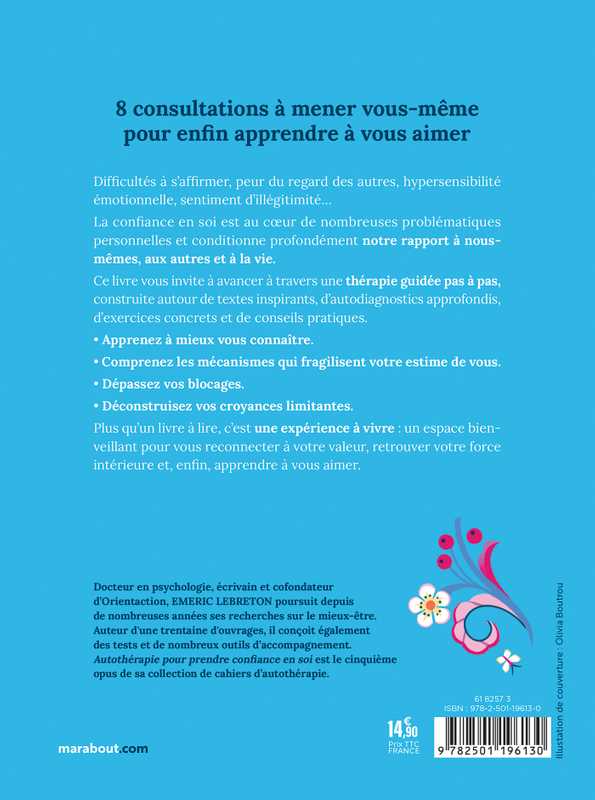 Fort du succès de ses précédents carnets d’autothérapie, Emeric Lebreton, docteur en psychologie et spécialiste du développement personnel, consacre ce nouveau volume à un thème universel et particulièrement attendu : la confiance en soi.