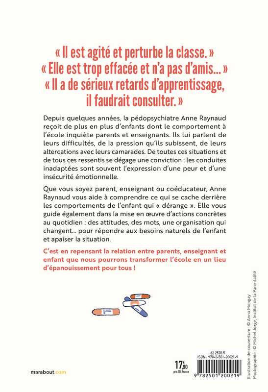 Depuis quelques années, la pédopsychiatre Anne Raynaud reçoit de plus en plus d'enfants dont le comportement à l'école inquiète parents et enseignants. Ils lui parlent de leurs difficultés, de la pression qu'ils subissent, de leurs altercations avec leurs camarades. De toutes ces situations et de tous ces ressentis se dégage une conviction : les conduites inadaptées sont souvent l'expression d'une peur et d'une insécurité émotionnelle.
