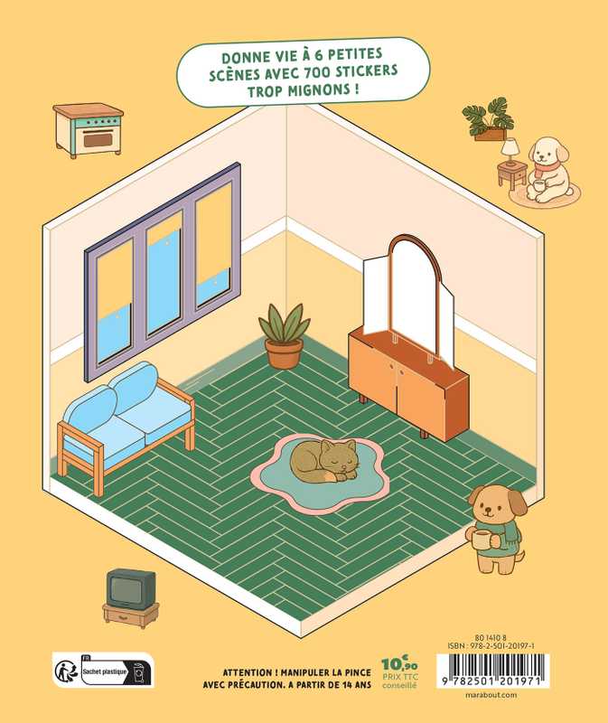 Avec 6 scènes déco à compléter, crée des ambiances uniques en jouant avec les meubles, objets, plantes et accessoires illustrés.