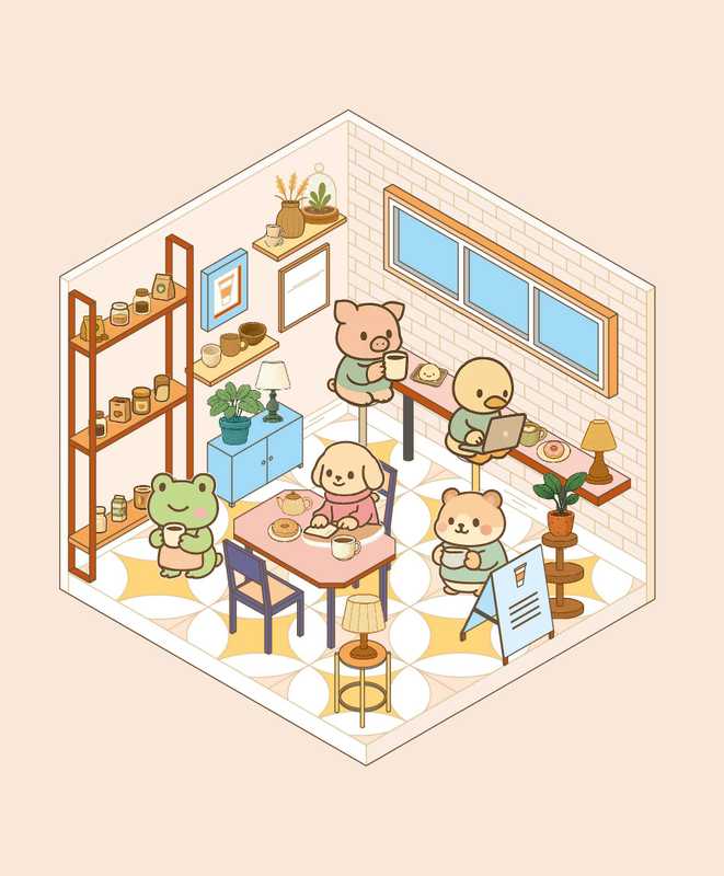 Crée et recrée ton coffee shop idéal grâce à des stickers repositionnables à l’infini.