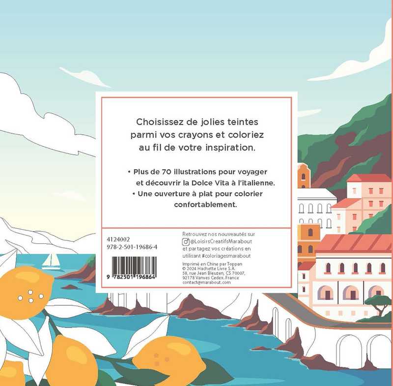 Plus de 70 illustrations pour voyager et découvrir la Dolce Vita à l'italienne.Une ouverture à plat pour colorier confortablement.