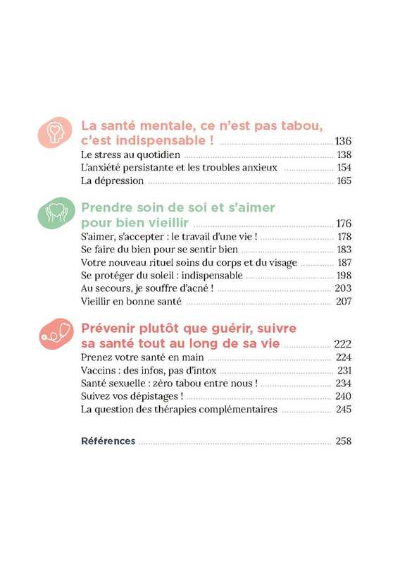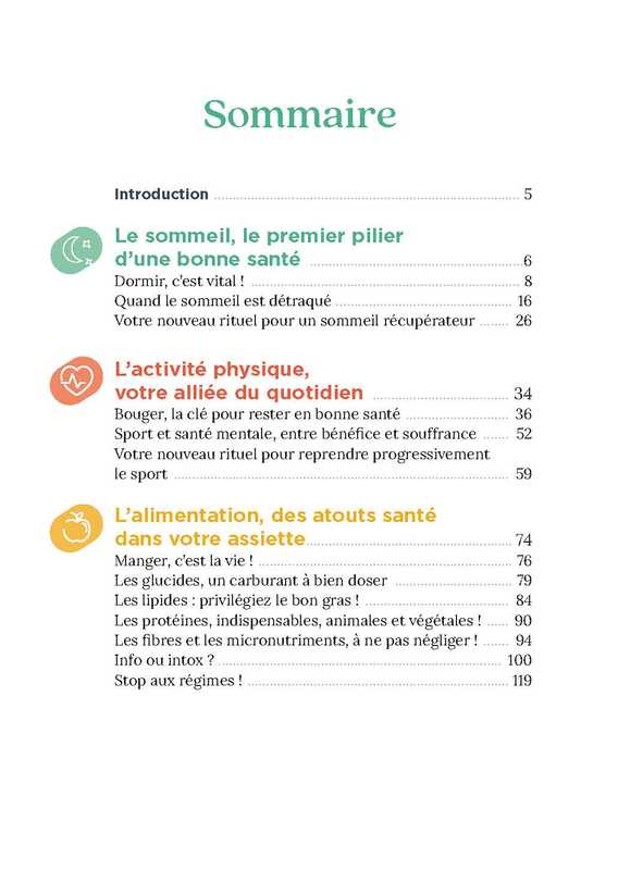 Je vous livre dans cet ouvrage mes conseils de médecin pour préserver votre santé : améliorer la qualité de votre sommeil, trouver votre routine alimentaire, vous motiver à avoir une activité physique régulière, faire attention à votre santé mentale, vous accorder des moments de bien-être... tout est lié !