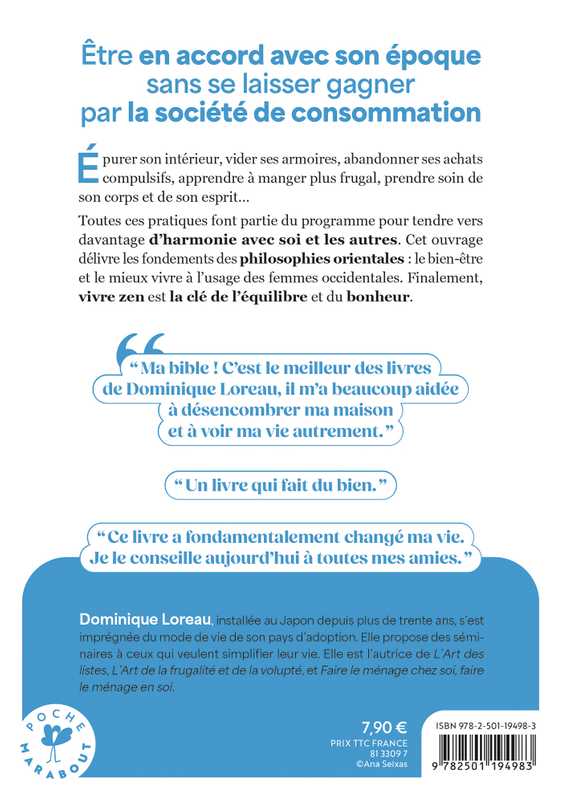 Toutes ces pratiques font partie du programme pour tendre vers davantage d’harmonie avec soi et les autres. Cet ouvrage délivre les fondements des philosophies orientales : le bien-être et le mieux-vivre à l’usage des femmes occidentales. Finalement, vivre zen est la clé de l’équilibre et du bonheur.