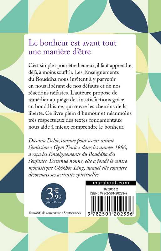 Les Enseignements du Bouddha nous invitent à y parvenir en nous libérant de nos défauts et de nos réactions néfastes. L’auteure propose de remédier au piège des insatisfactions grâce au bouddhisme, qui ouvre les chemins de la liberté. Ce livre plein d’humour et néanmoins très respectueux des textes fondamentaux nous aide à mieux comprendre le bonheur.