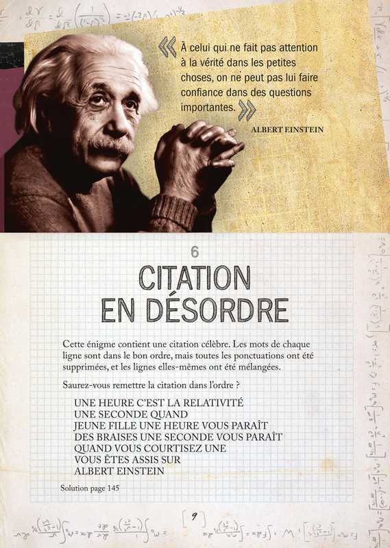 Plus de 130 énigmes et casse-tête sauront mettre votre réflexion à l'épreuve tout en stimulant vos différentes capacités intellectuelles. Appréhendez également l'homme derrière le scientifique, grâce aux multiples citations qui ponctuent ce livre.