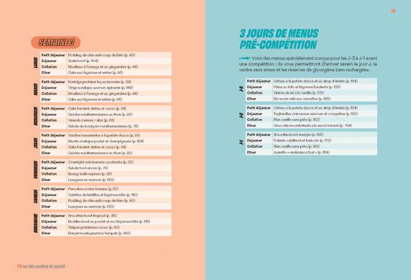 - 40 recettes pour la compétition, riches en glucides et digestes.