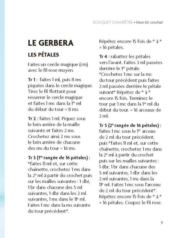 À l’intérieur, tout est prévu pour réaliser  un mini bouquet  : les fils, le crochet, la tige métallique et un livret explicatif clair et détaillé !