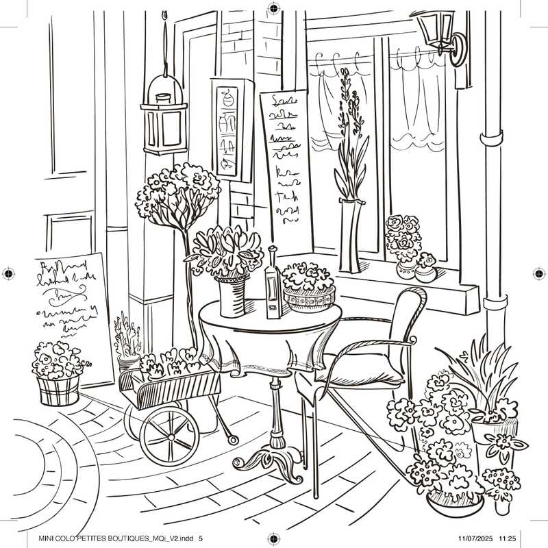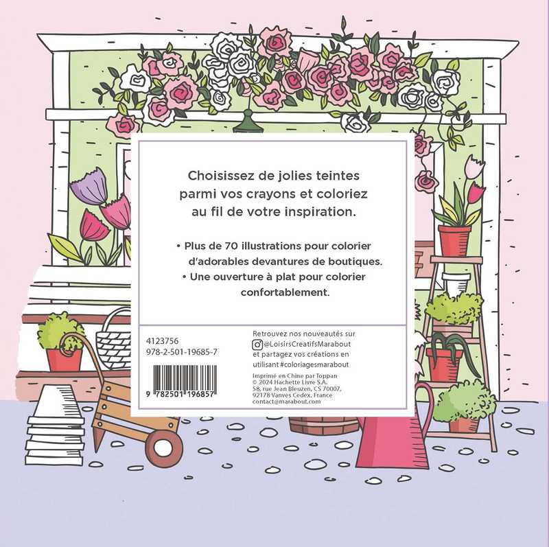 Plus de 70 illustrations pour colorier d'adorables devantures de boutiques.Une ouverture à plat pour colorier confortablement.