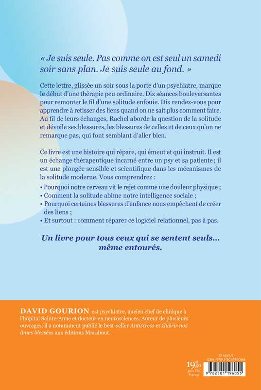 Ce livre est une histoire qui répare, qui émeut et qui instruit. Il est un échange thérapeutique incarné entre un psy et sa patiente ; il est une plongée sensible et scientifique dans les mécanismes de la solitude moderne. Vous comprendrez :