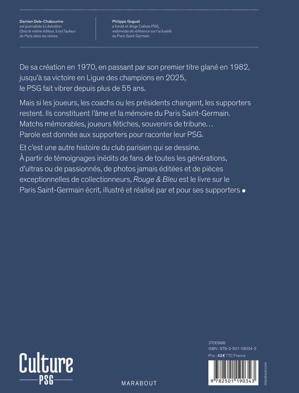 Et c'est une autre histoire du club parisien qui se dessine. A partir de témoignages inédits de fans de toutes les générations, d'ultras ou de passionnés, de photos jamais éditées et de pièces exceptionnelles de collectionneurs, Rouge & Bleu est le livre sur le Paris Saint-Germain écrit, illustré et réalisé par et pour ses supporters.