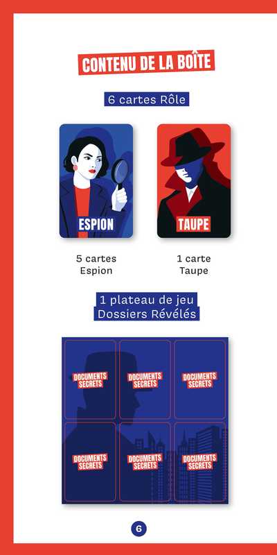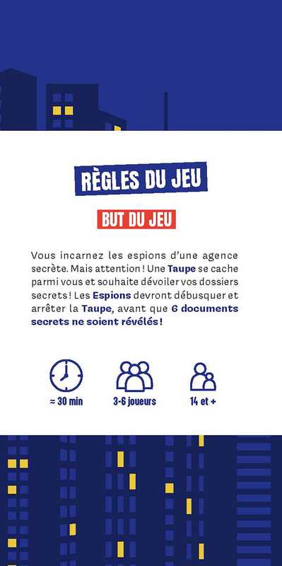 Vous incarnez les espions d'une agence secrète. Mais attention ! Une taupe se cache parmi vous et souhaite dévoiler des informations classifiées. A vous de la démasquer !